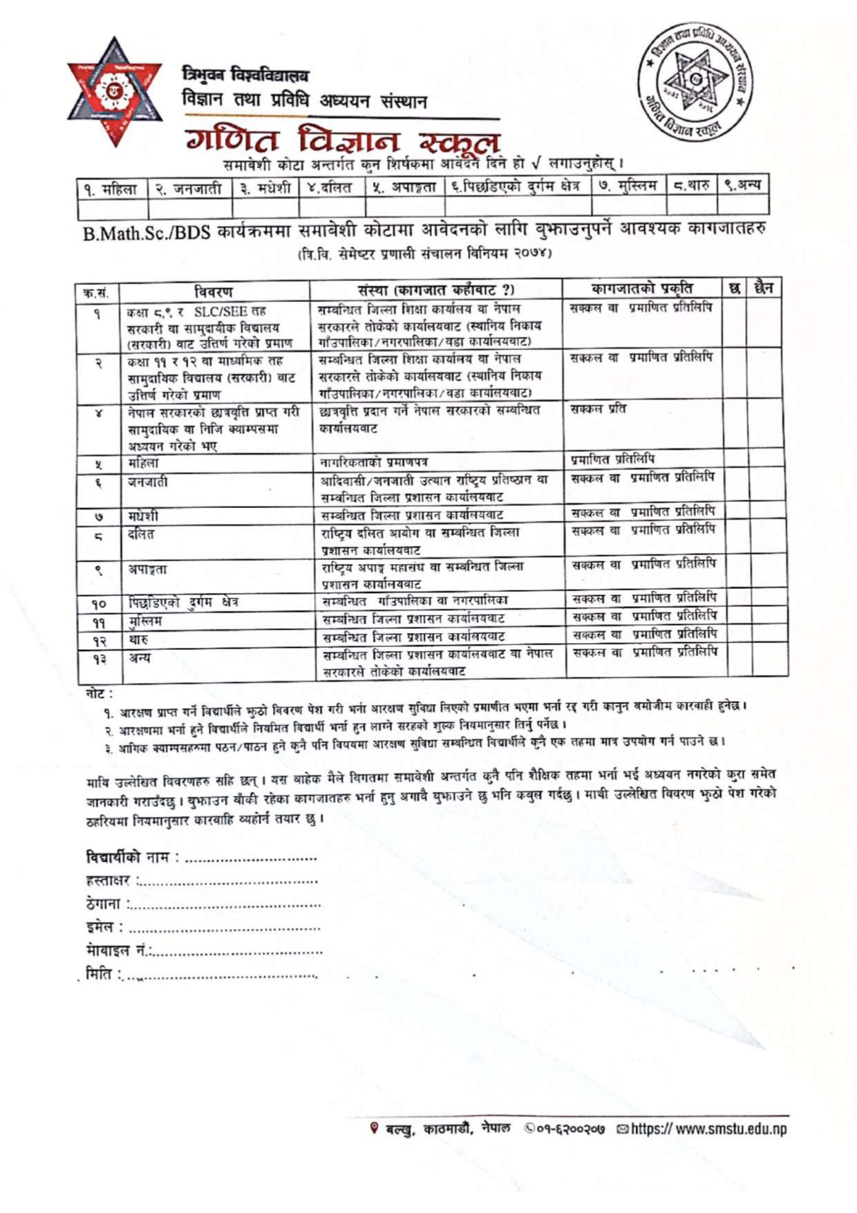 School of Mathematical Sciences (SMS) is the first School of the Institute of Science and Technology, Tribhuvan University, Nepal. Considering the importance and value of Actuarial Science, this School has been running a Bachelor in Mathematical Sciences (B.Math.Sc.) program with a major in Actuarial Science since its founding. Actuarial Science is an interdisciplinary field that deals with systematic observation of natural events to assess the likelihood of future risks of these events occur... ... ...
