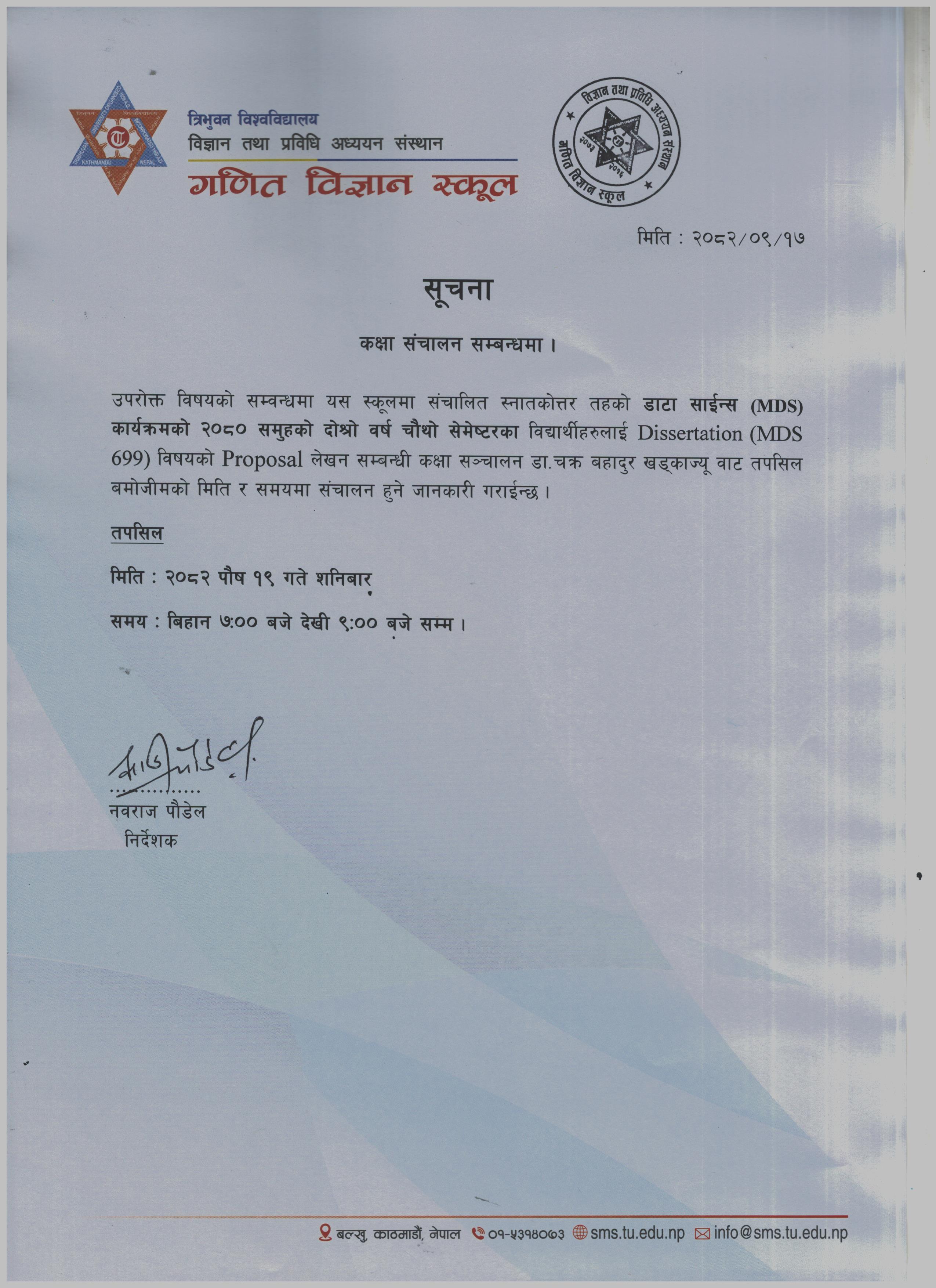 स्नातकोत्तर तहको Dissertation विषयको प्रपोजल लेखन कक्षा सञ्चालन सम्बन्धि सुचना २०८२