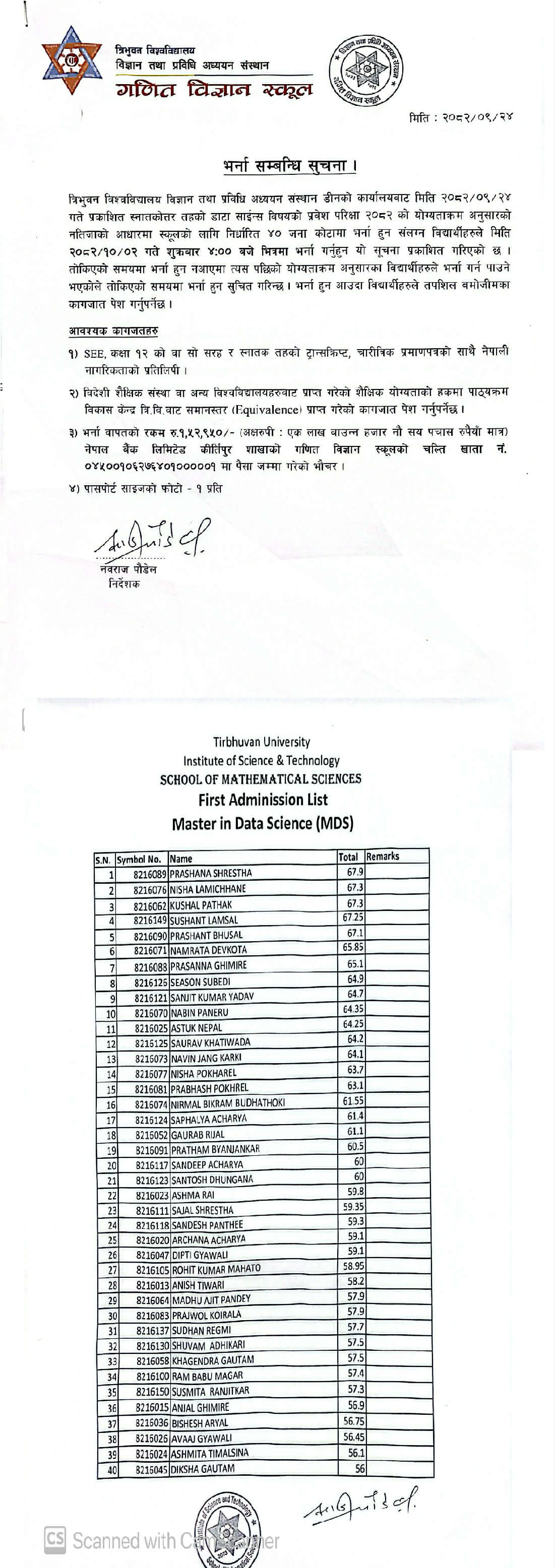 MDS admission first list 2082
