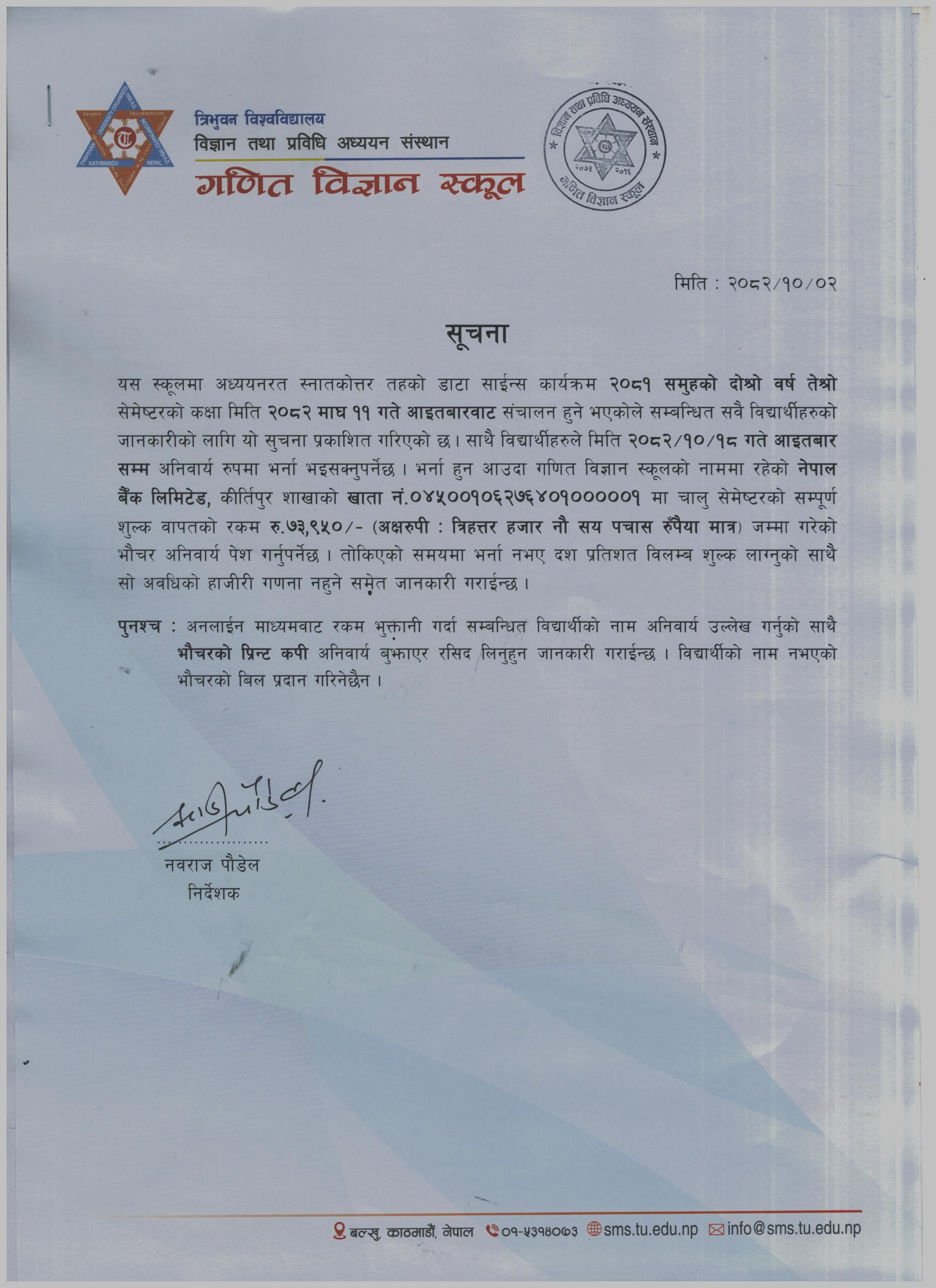 स्नातकोत्तर तह तेश्रो सेमेष्टरको कक्षा सञ्चालन सम्बन्धि सुचना २०८२
