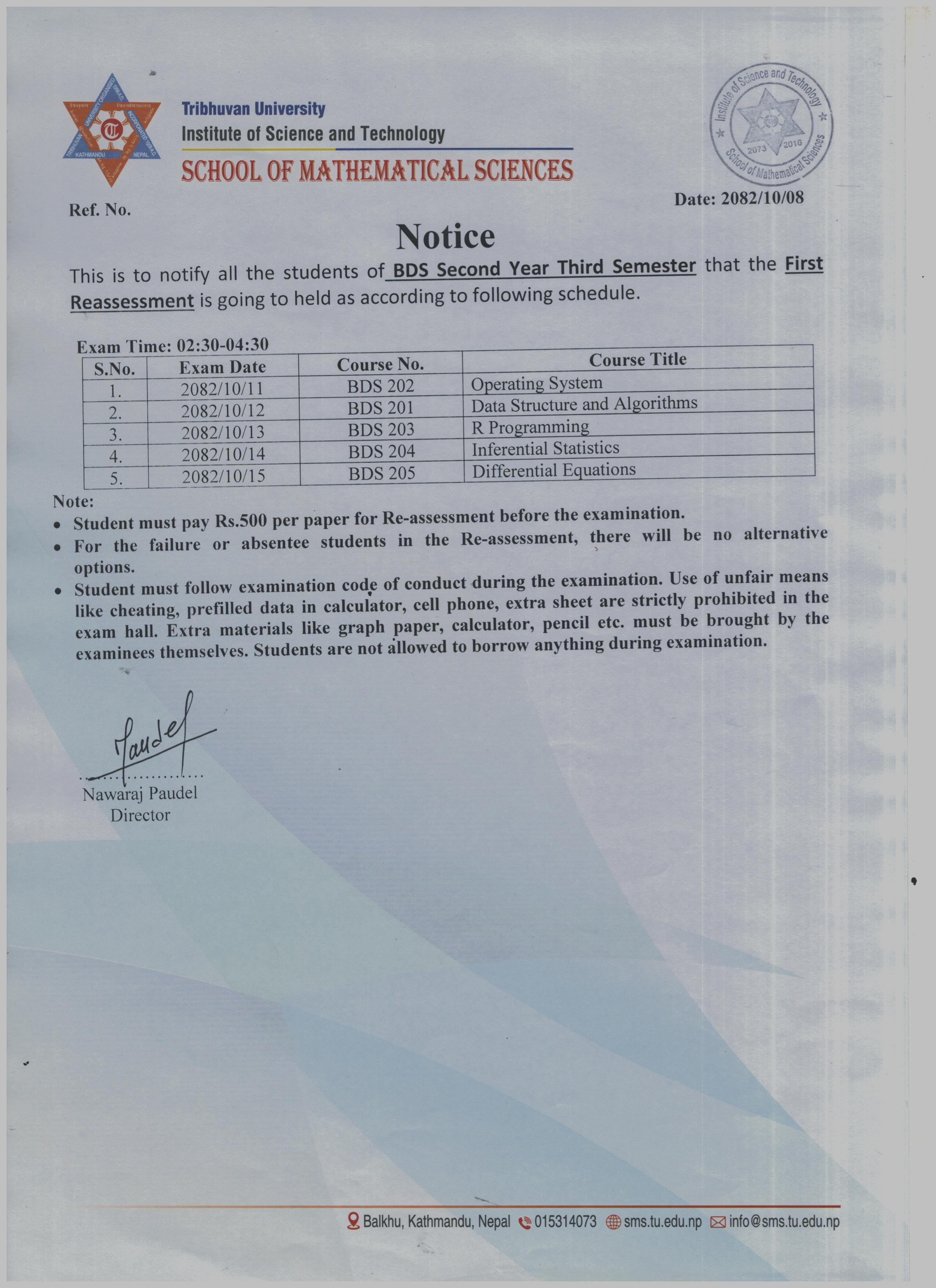 BDS Second Year Third Semester First Reassessment Exam Schedule 2082