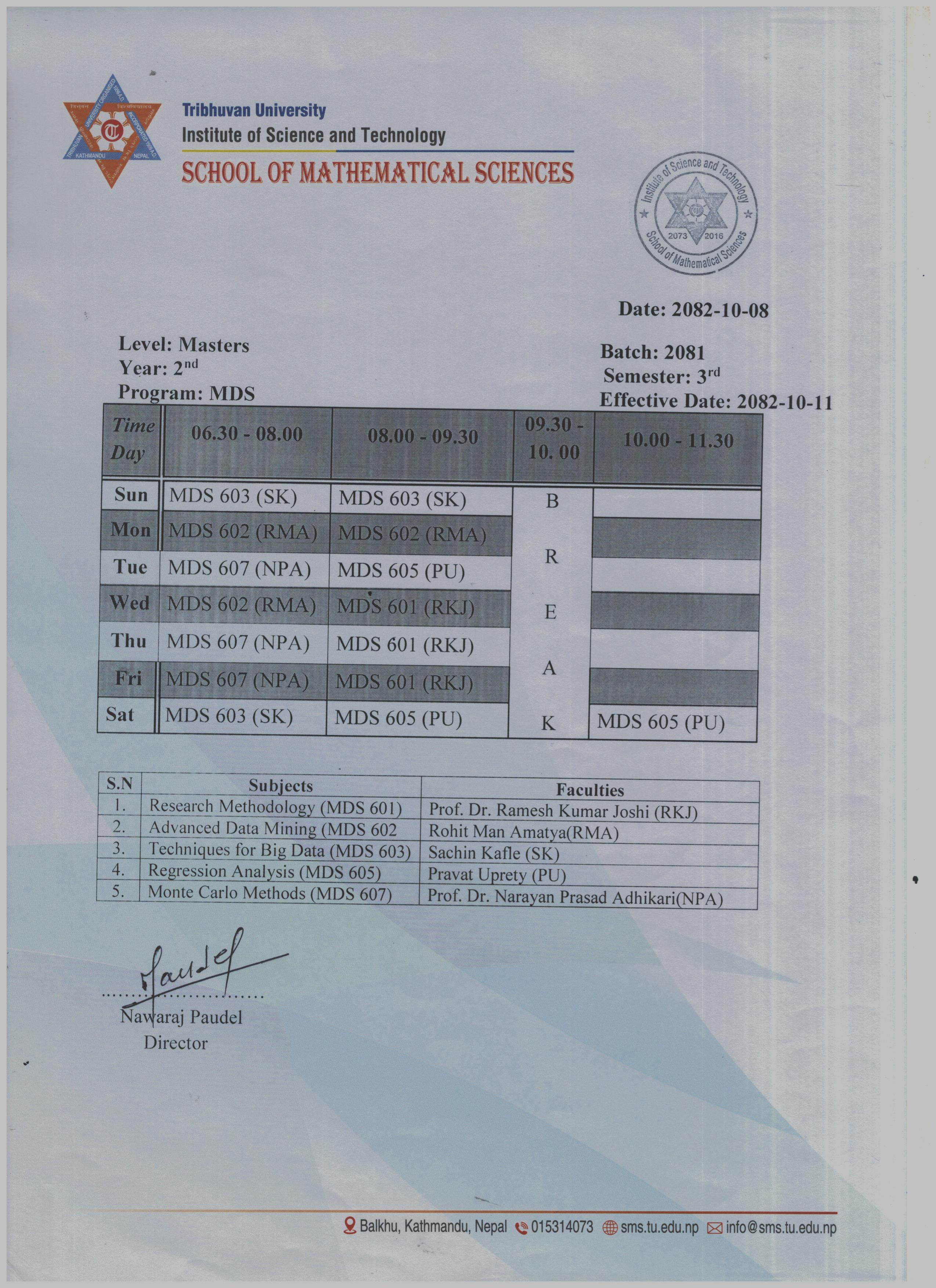 MDS Third Semester Class Routine 2082