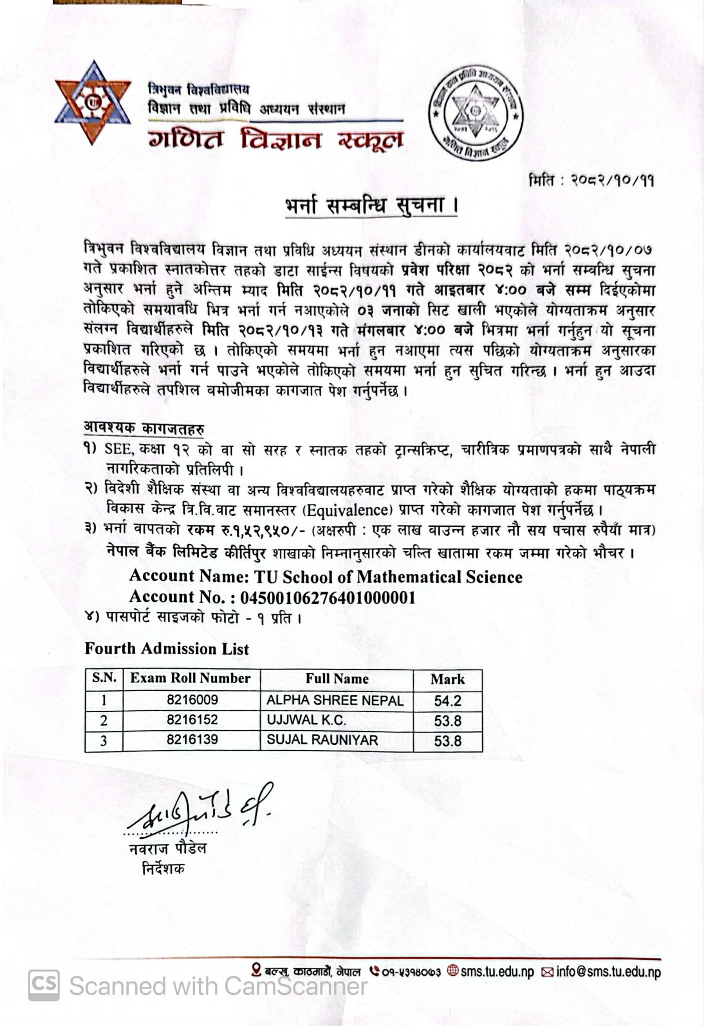 MDS Fourth Admission List 2082