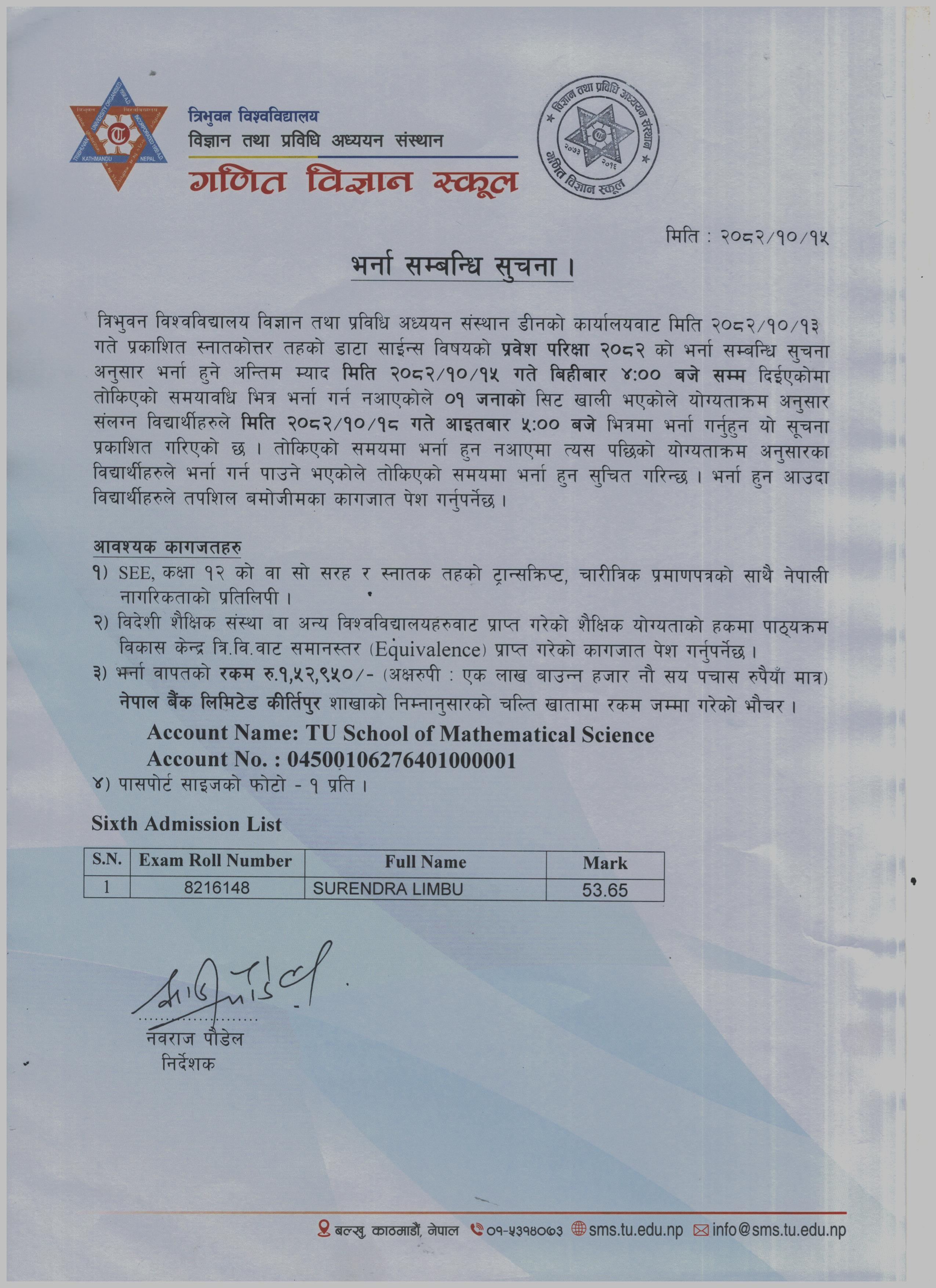 MDS sixth Admission List 2082