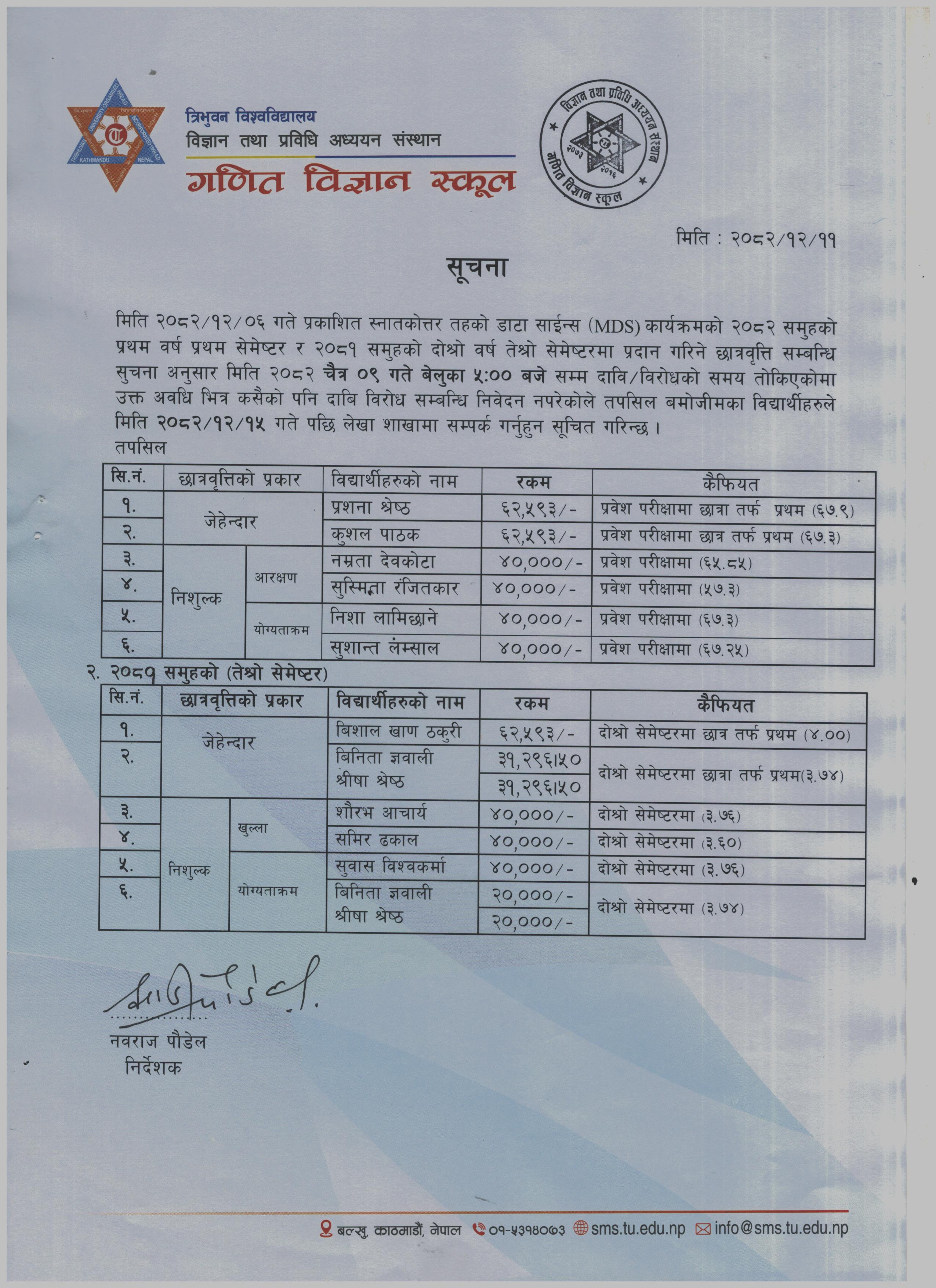 स्नातकोत्तर तहको छात्रवृत्ति सम्बन्धि सुचना २०८२