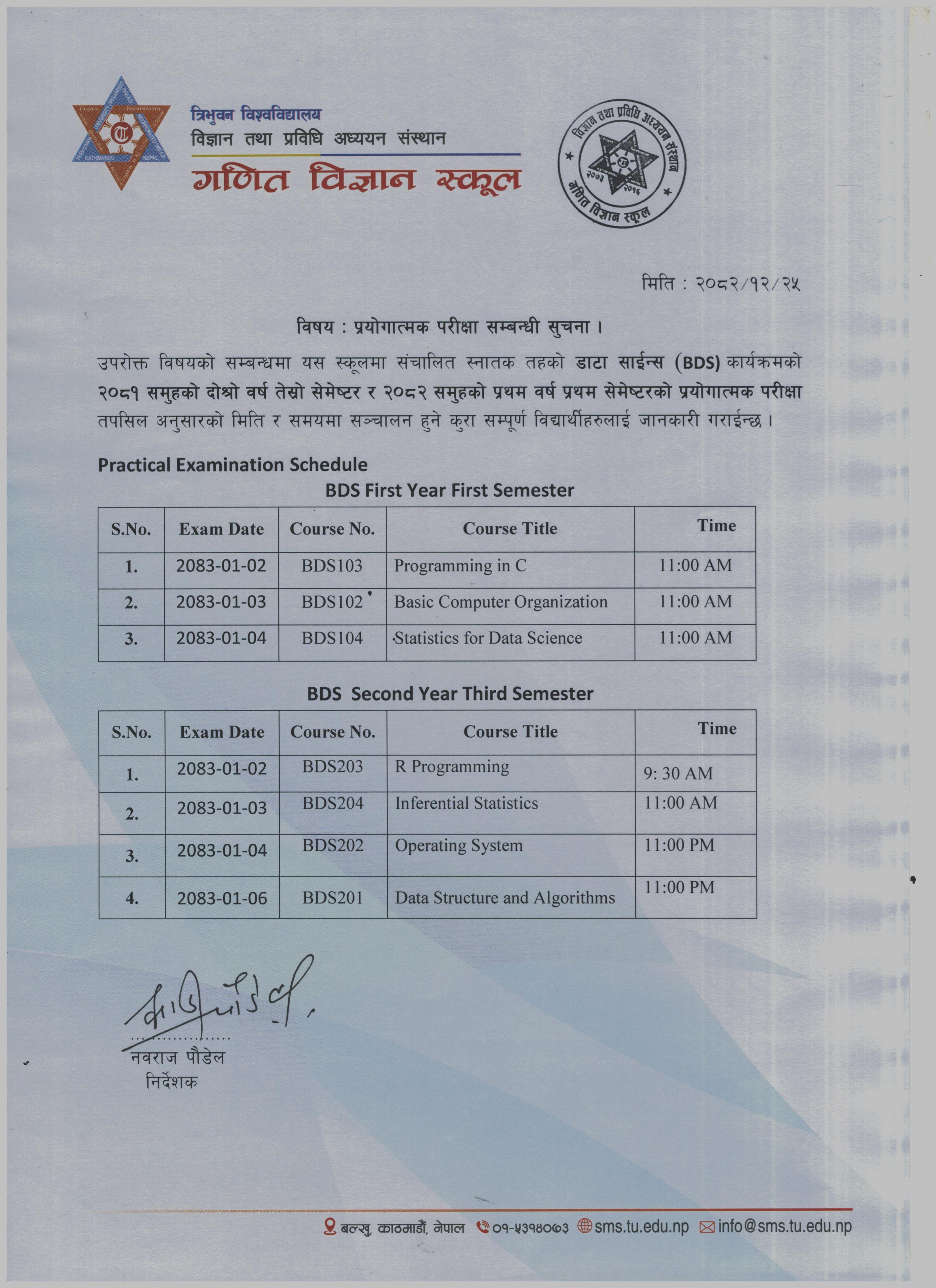 स्नातक तह डाटा साईन्स तेश्रो सेमेष्टरको Seminar विषयको प्रस्तुतिकरण सम्बन्धि सुचना २०८२