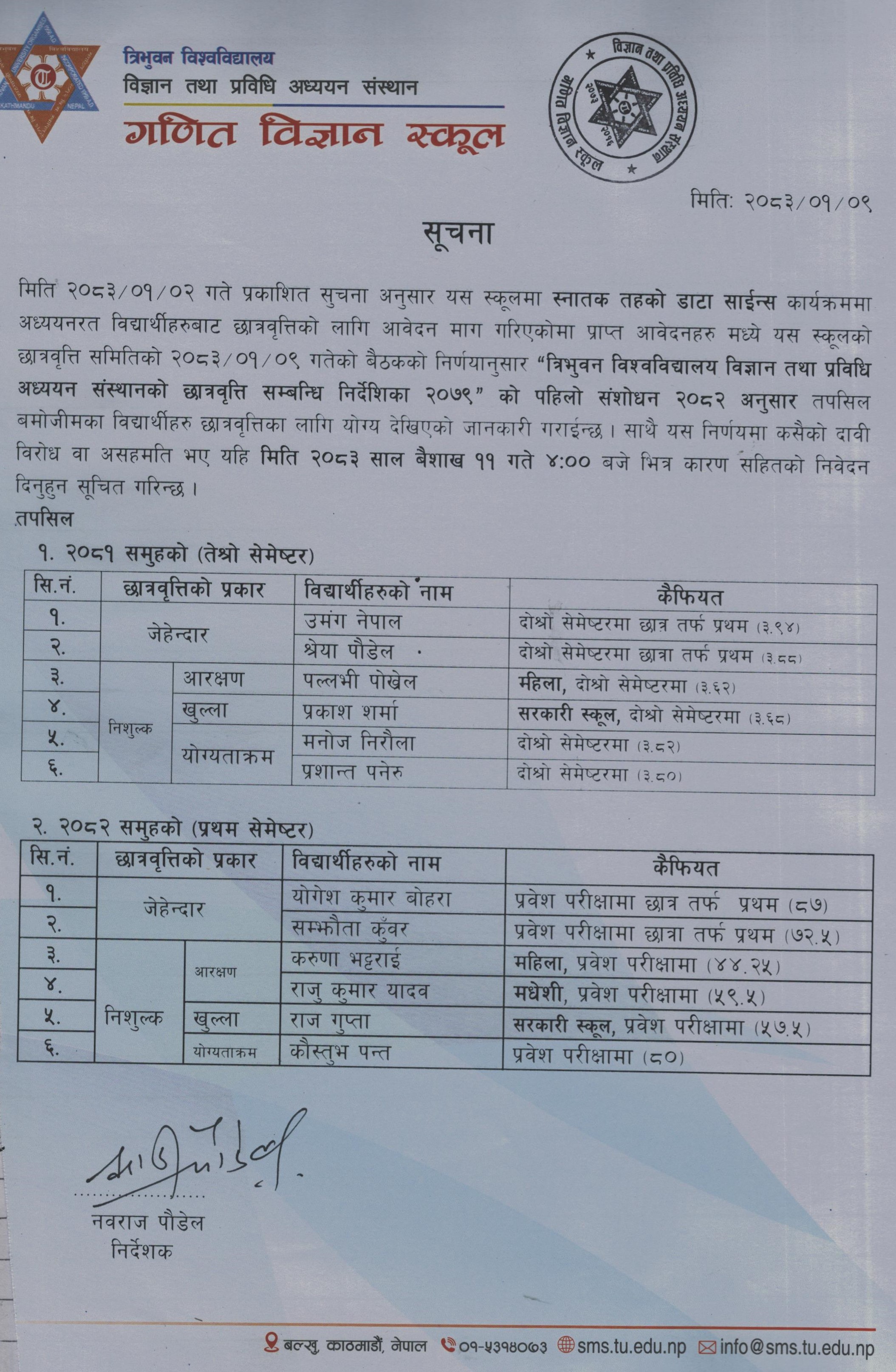 स्नातक तह डाटा साईन्स विषयको छात्रवृत्ति सम्बन्धि सुचना २०८२