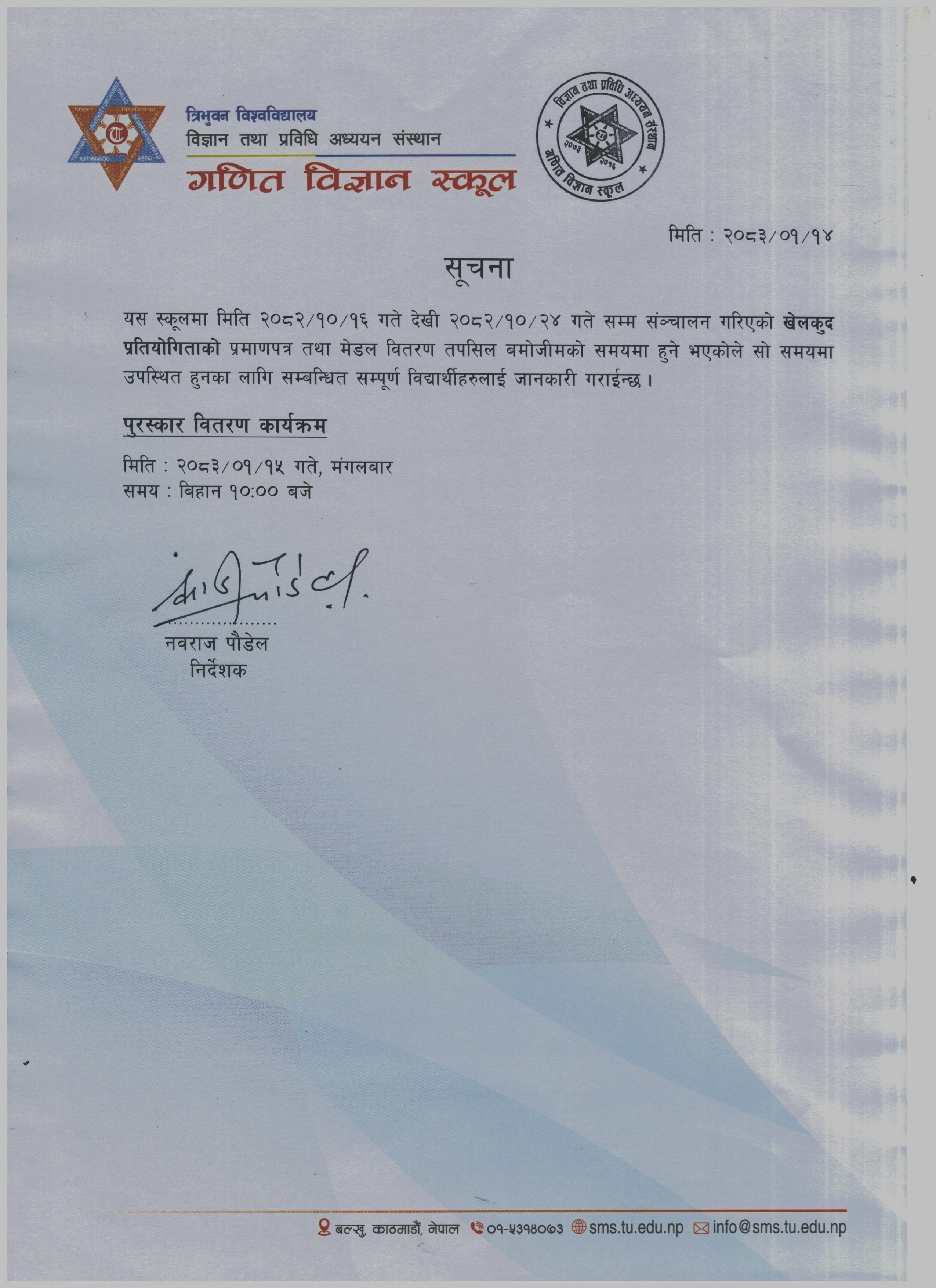 पुरस्कार वितरण सम्बन्धि सुचना २०८३