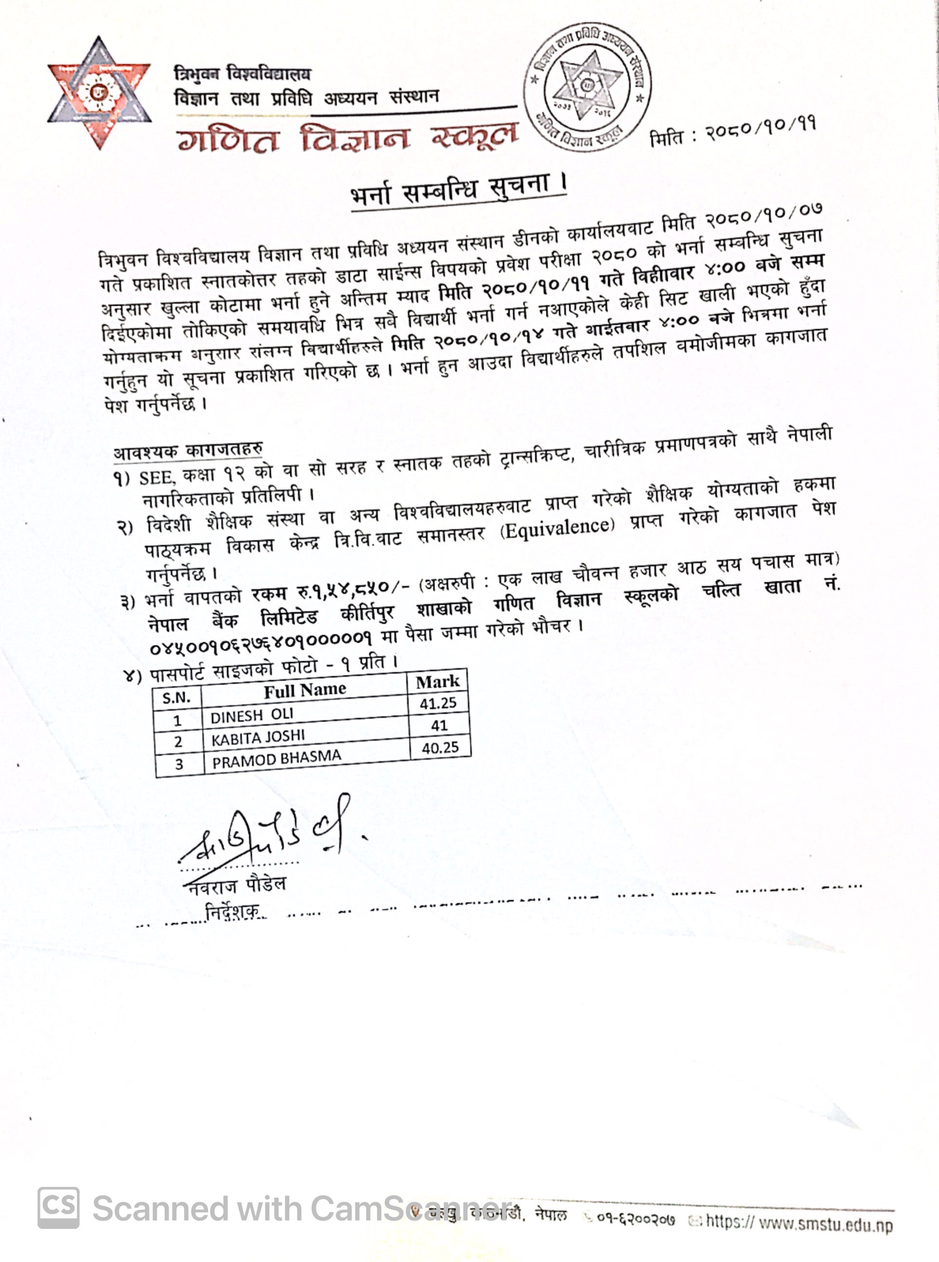 स्नातक तह डाटा साईन्स विषयको छात्रवृत्ति सम्बन्धि सुचना