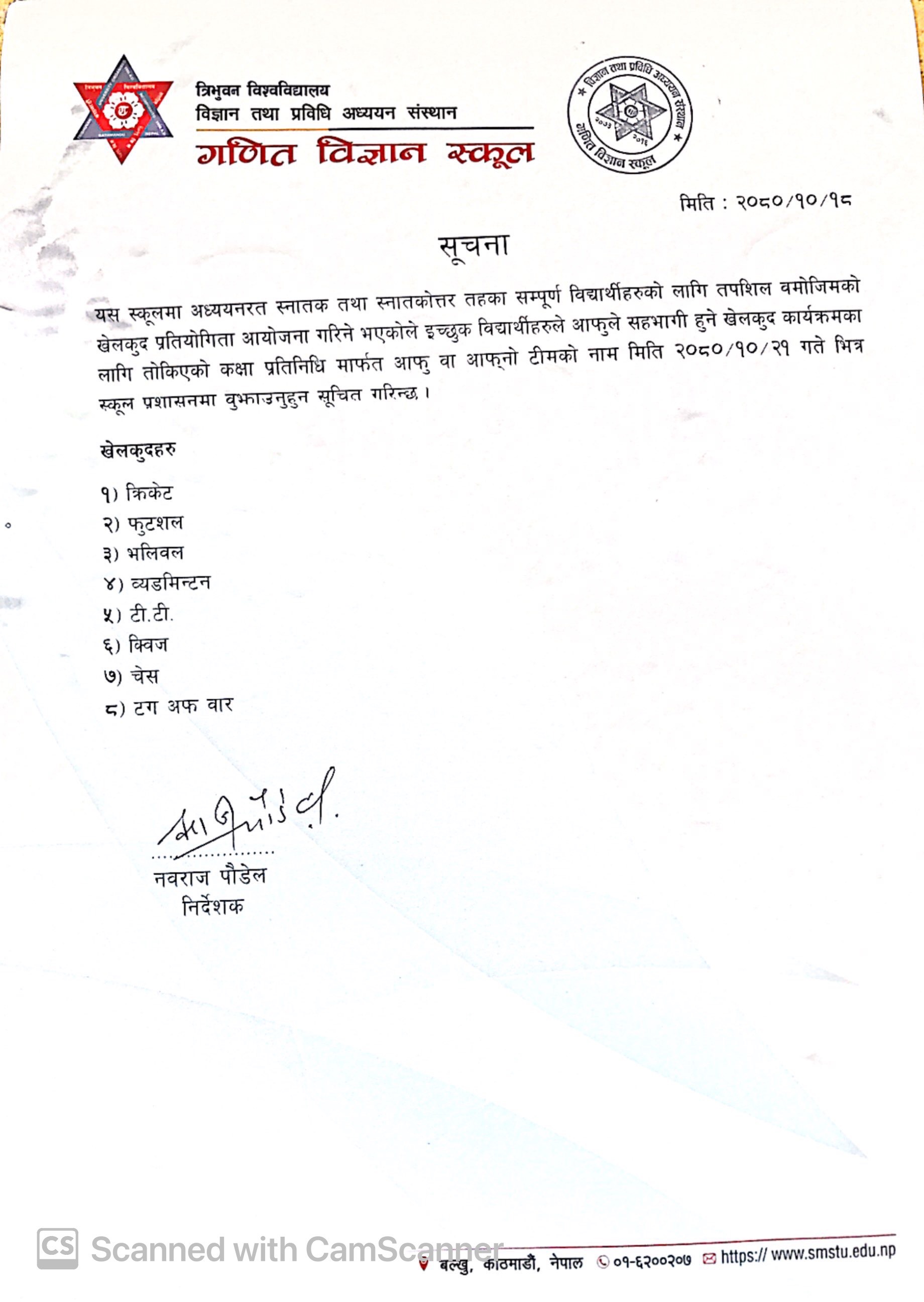 स्नातक तथा स्नातकोत्तर तहको खेलकुद प्रतियोगिता सम्बन्धि सुचना २०८०
