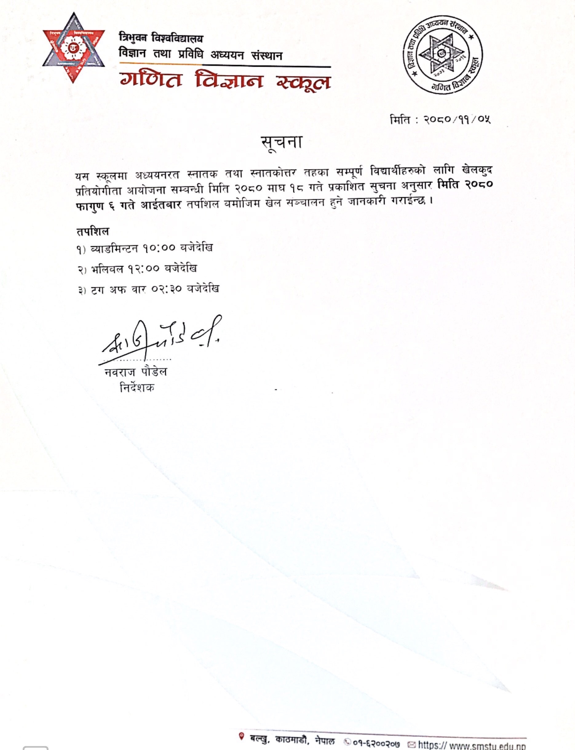 ब्याडमिन्टन, भलिबल र टग अफ वार खेल सम्बन्धि सुचना २०८०