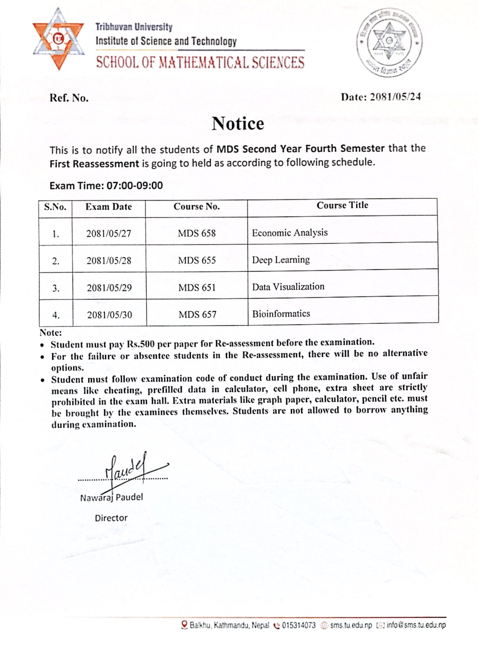 MDS Second Year Fourth Semester First Reassessment Exam Schedule 2081