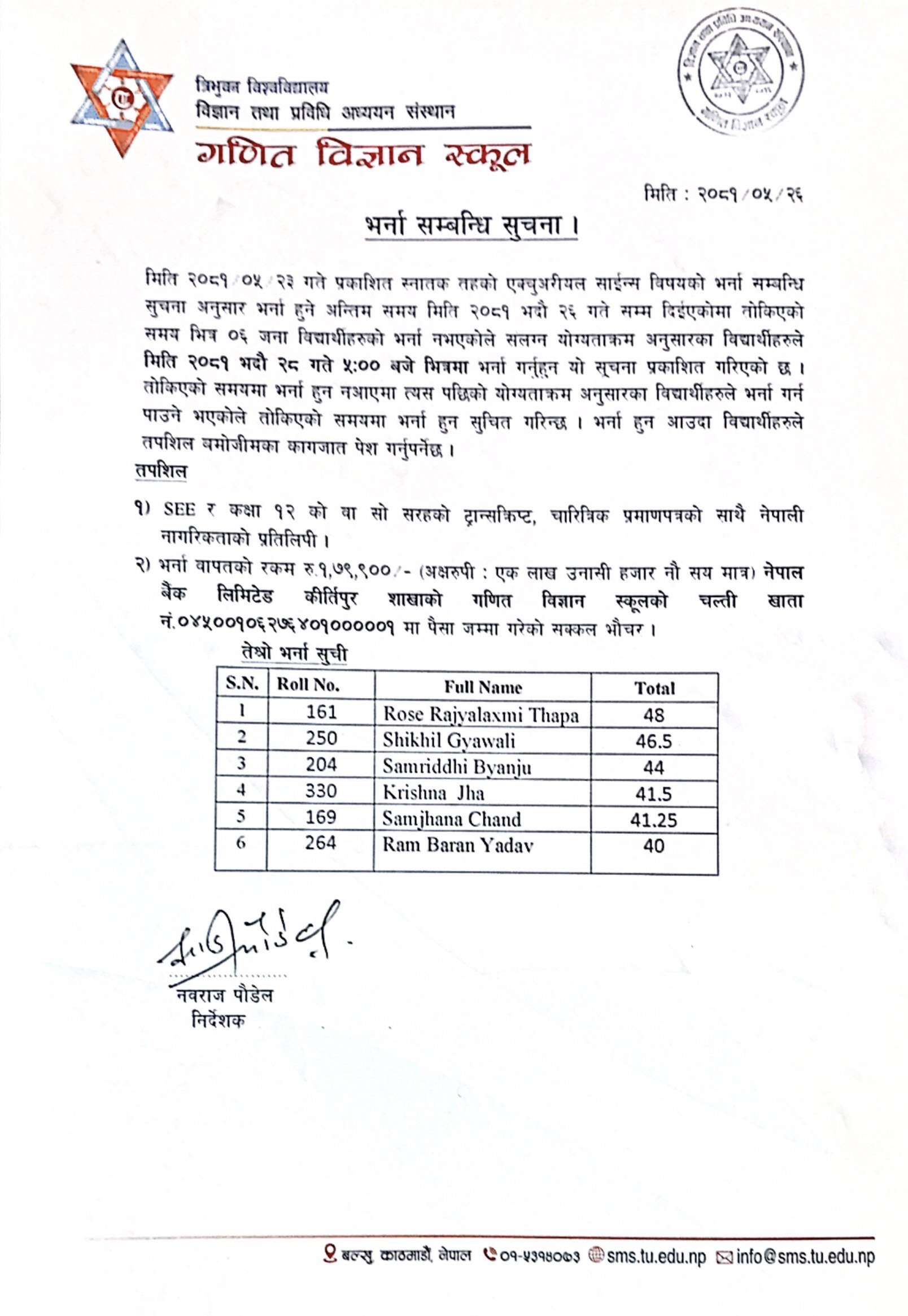 स्नातक तहको छात्रवृत्ति सम्बन्धि सुचना २०८२