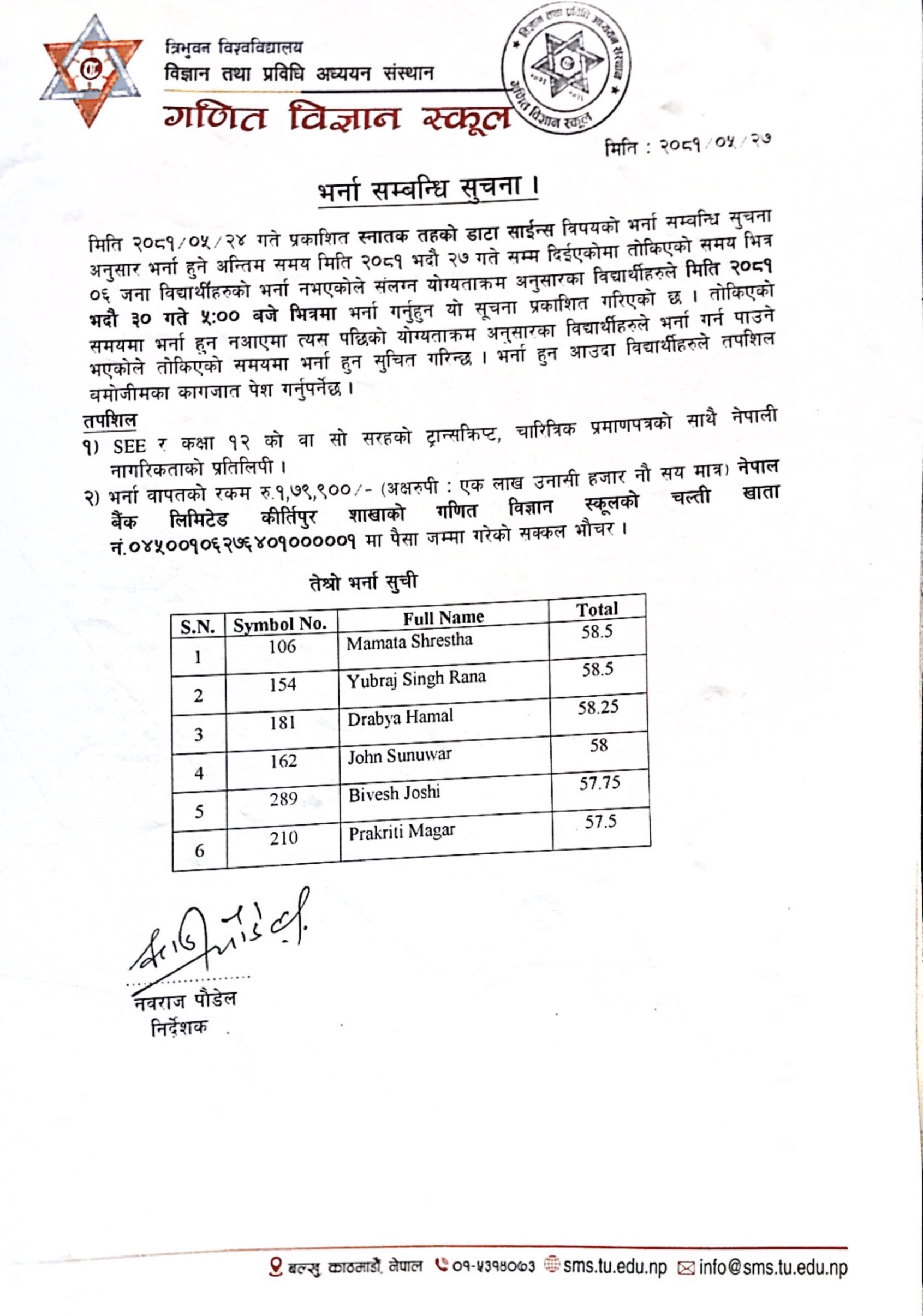 Bachelor in Data Science Third Admission List 2081