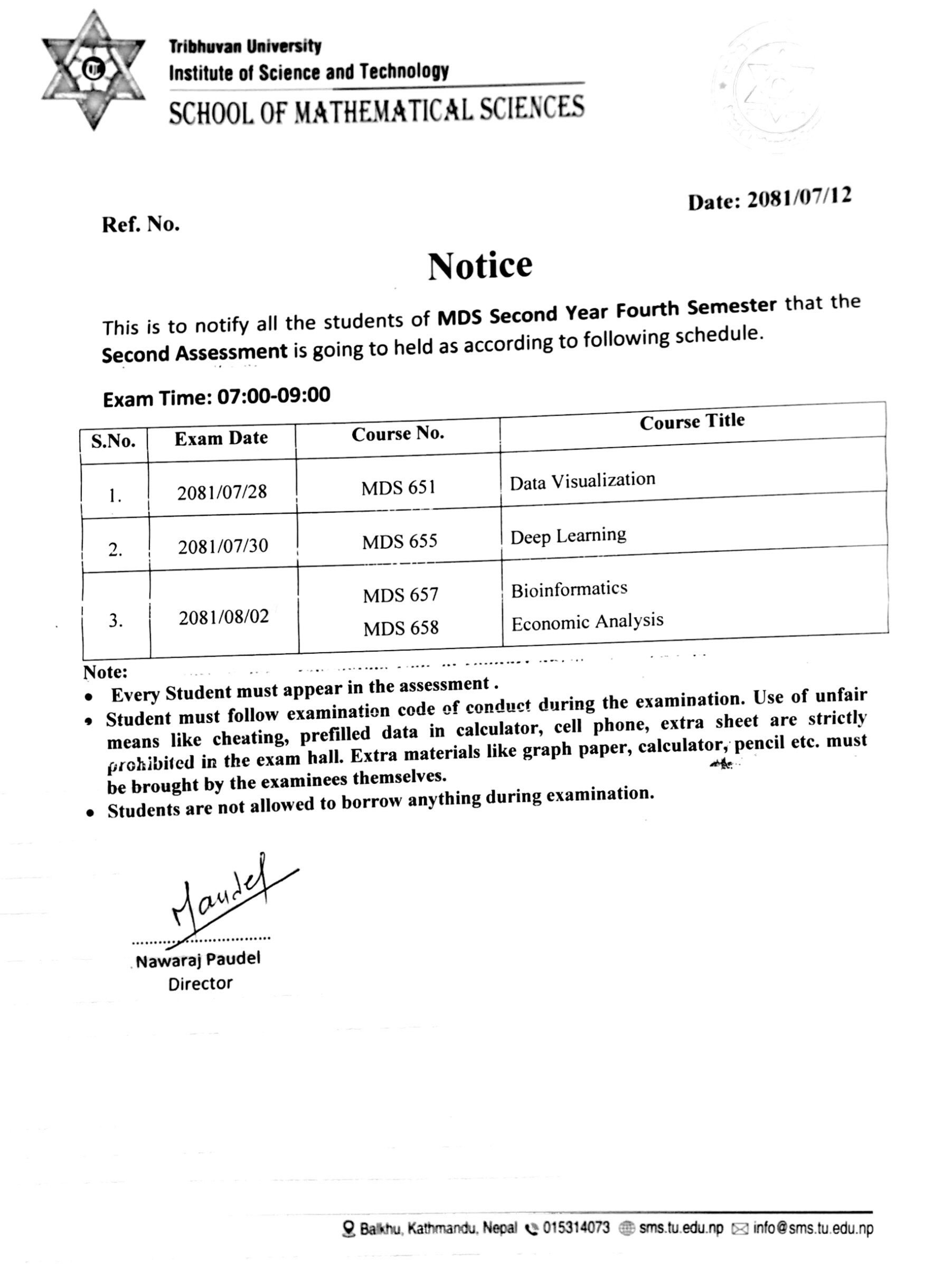 MDS Second Year Fourth Semester Second Assessment Exam Schedule 2081