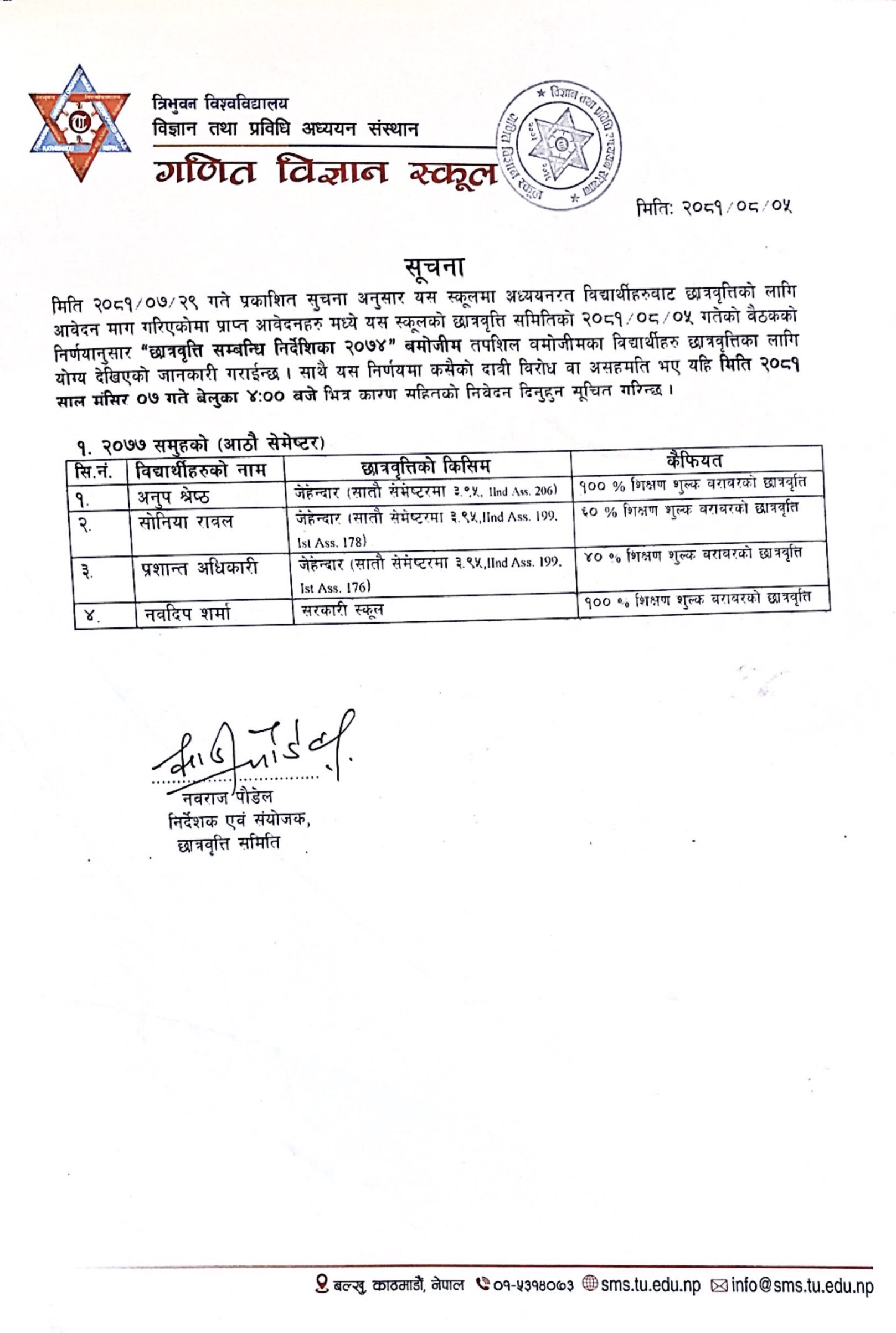 B.Math.Sc. २०७७ समुहको छात्रवृति सम्बन्धि सुचना २०८१