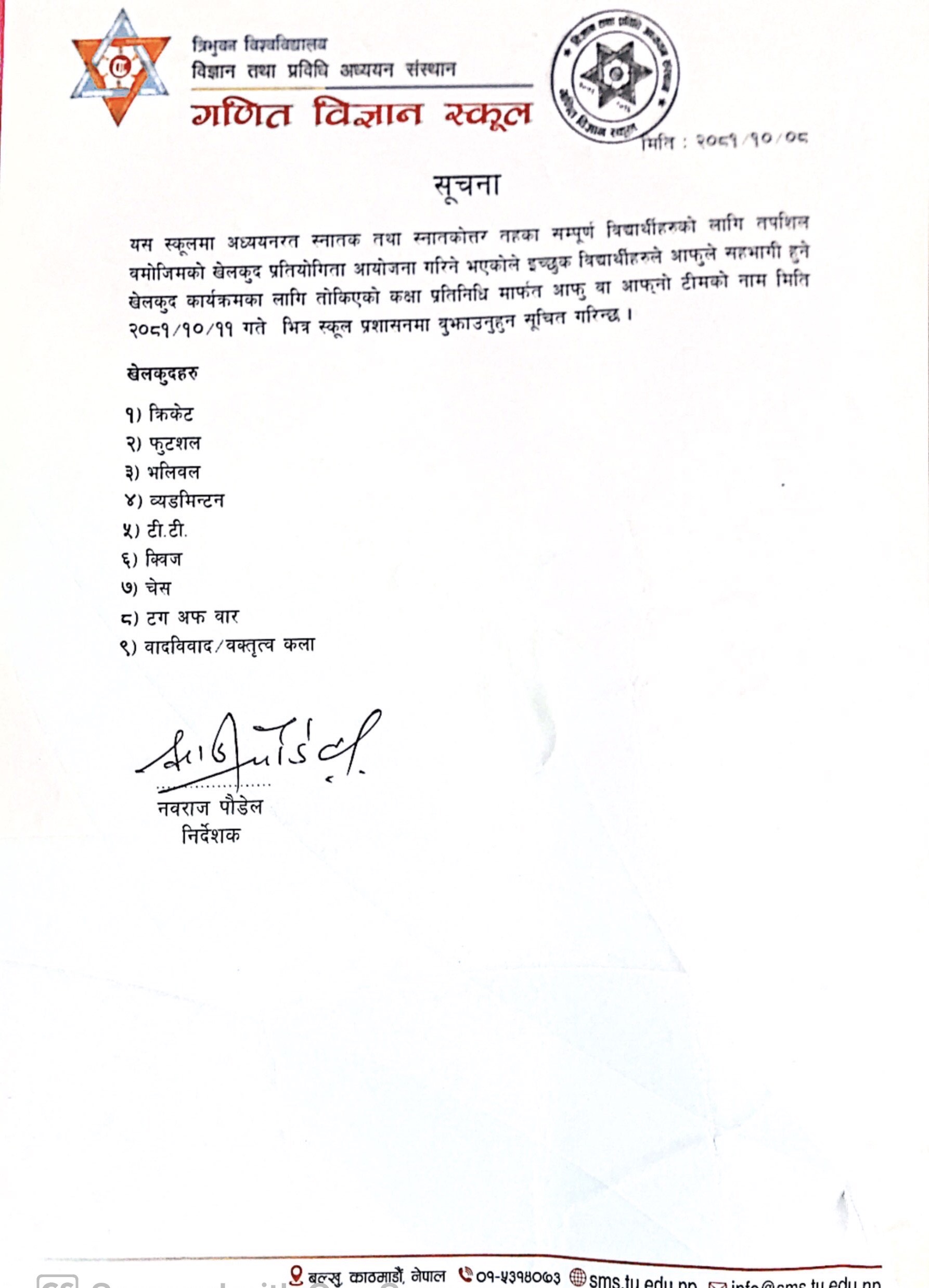 स्नातक तथा स्नातकोत्तर तहको खेलकुद प्रतियोगिता सम्बन्धि सुचना २०८१