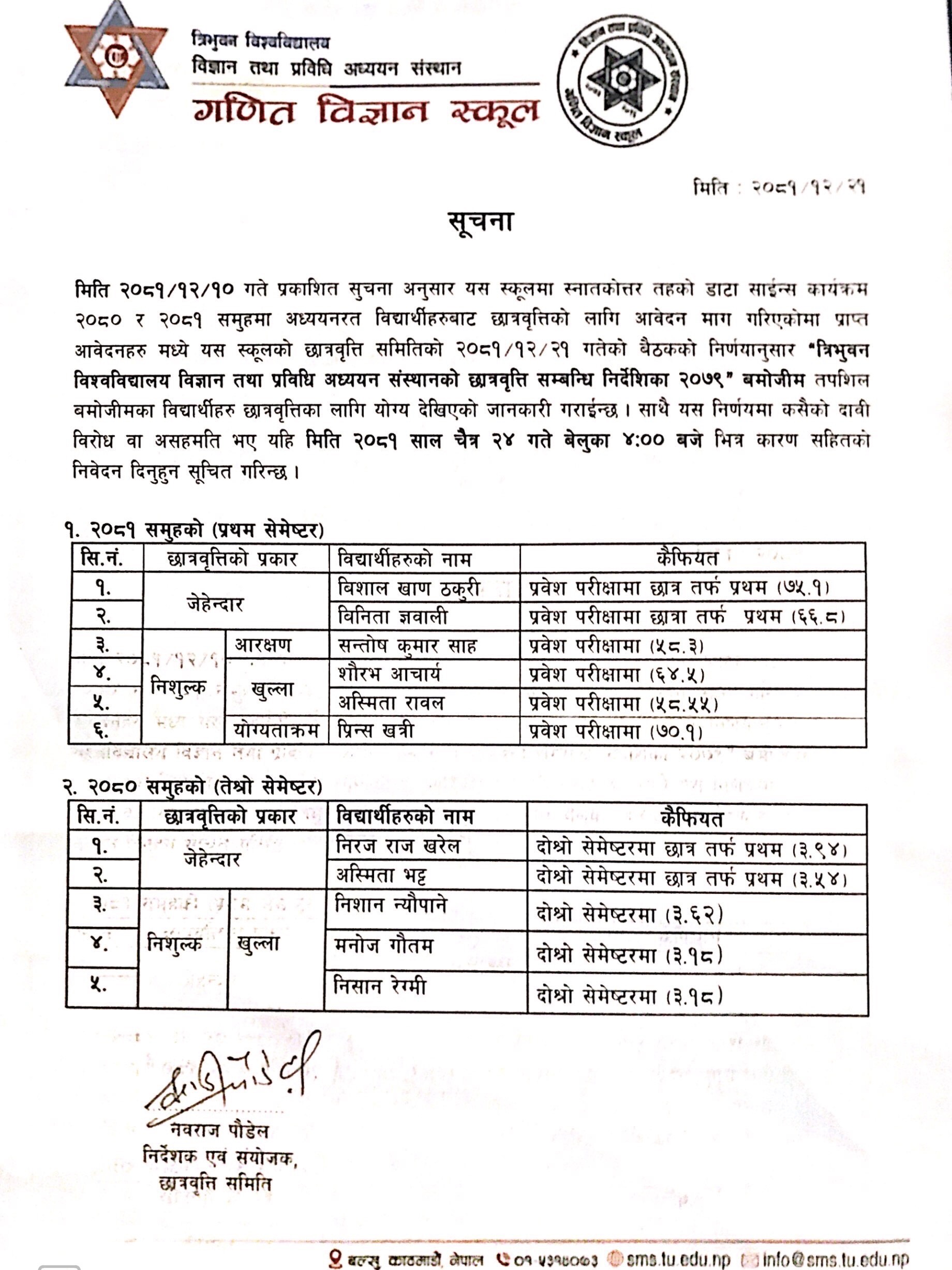 स्नातकोत्तर तह MDS कार्यक्रमको छात्रवृत्ति सम्बन्धि सुचना २०८१
