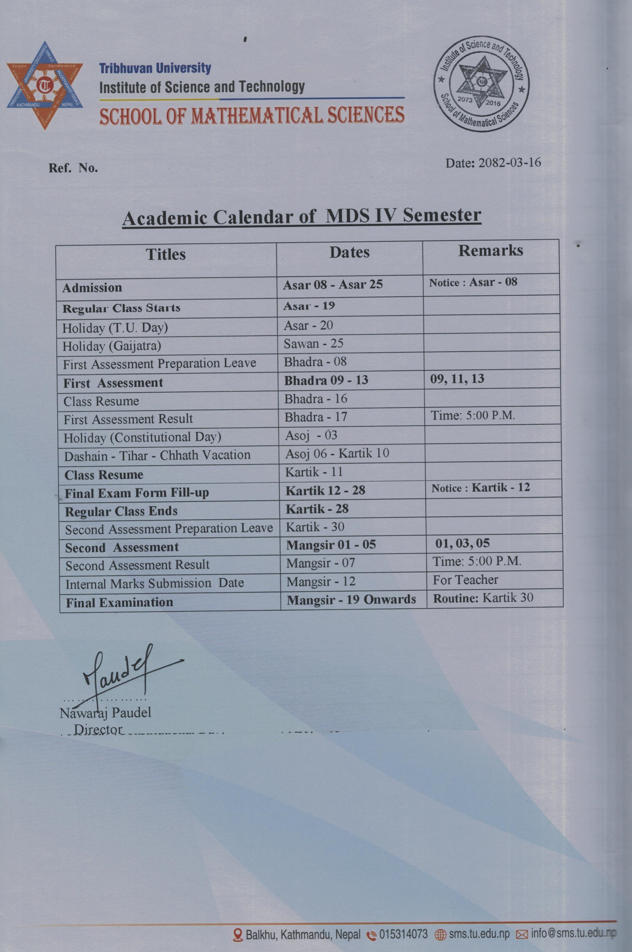 B.Math.Sc. First Year First Semester, Second Year Third Semester, Third Year Fifth Semester and Fourth Year Seventh Semester Second Assessment Exam Schedule 2082