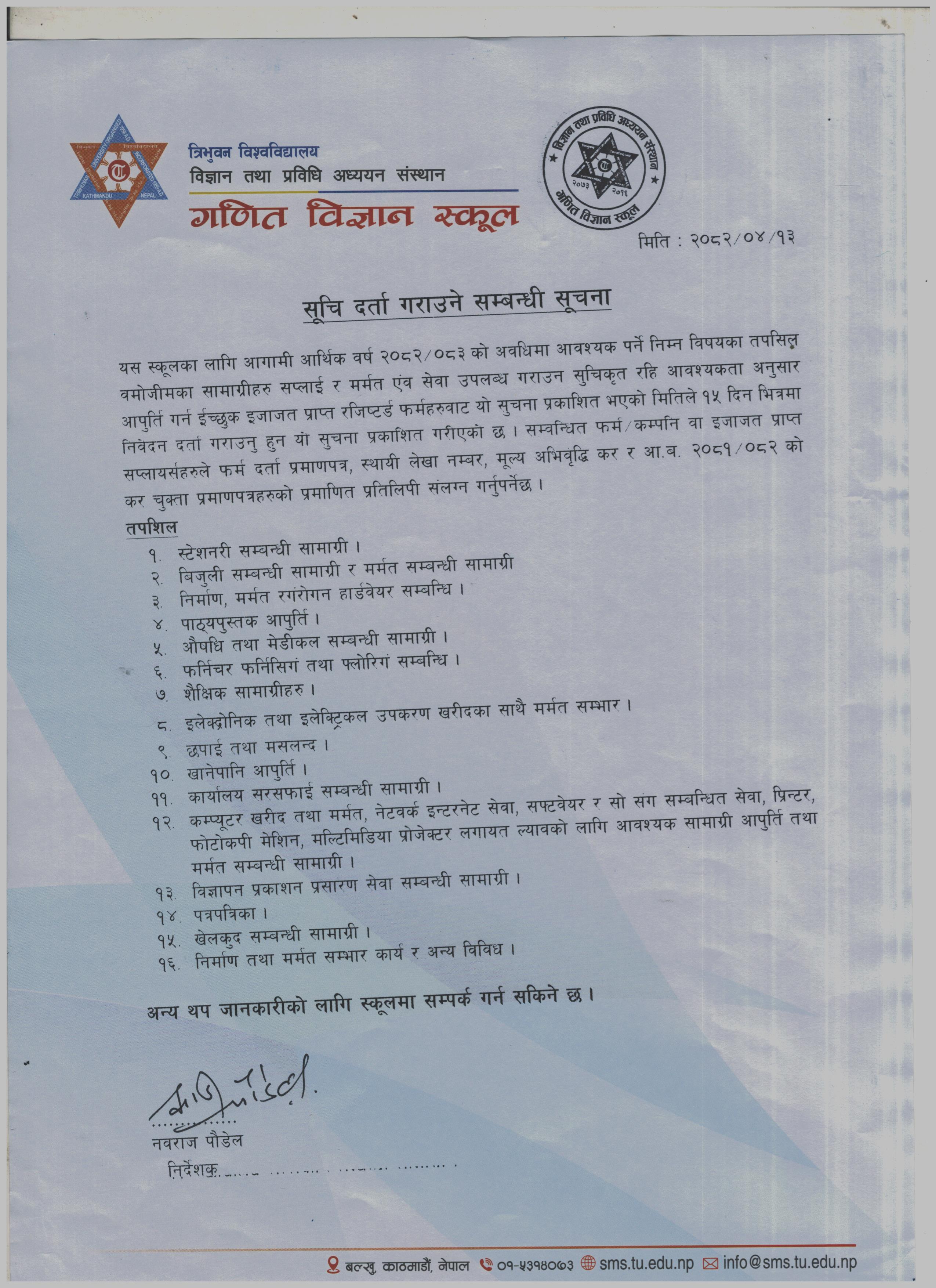 सुचि दर्ता सम्बन्धि सुचना २०८२