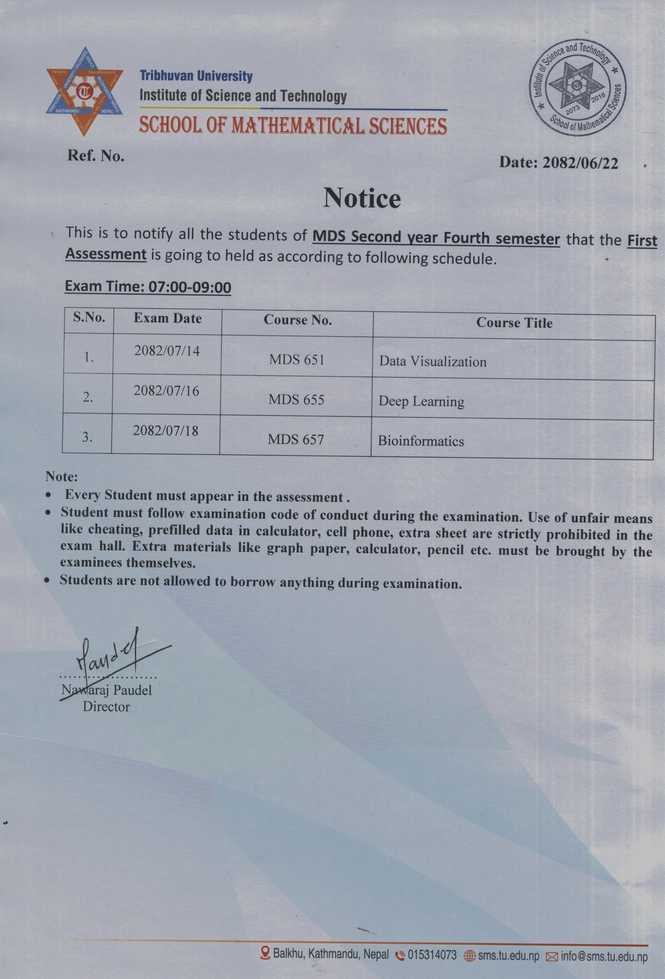 MDS Fourth Semester First Assessment Exam Revised Schedule 2082