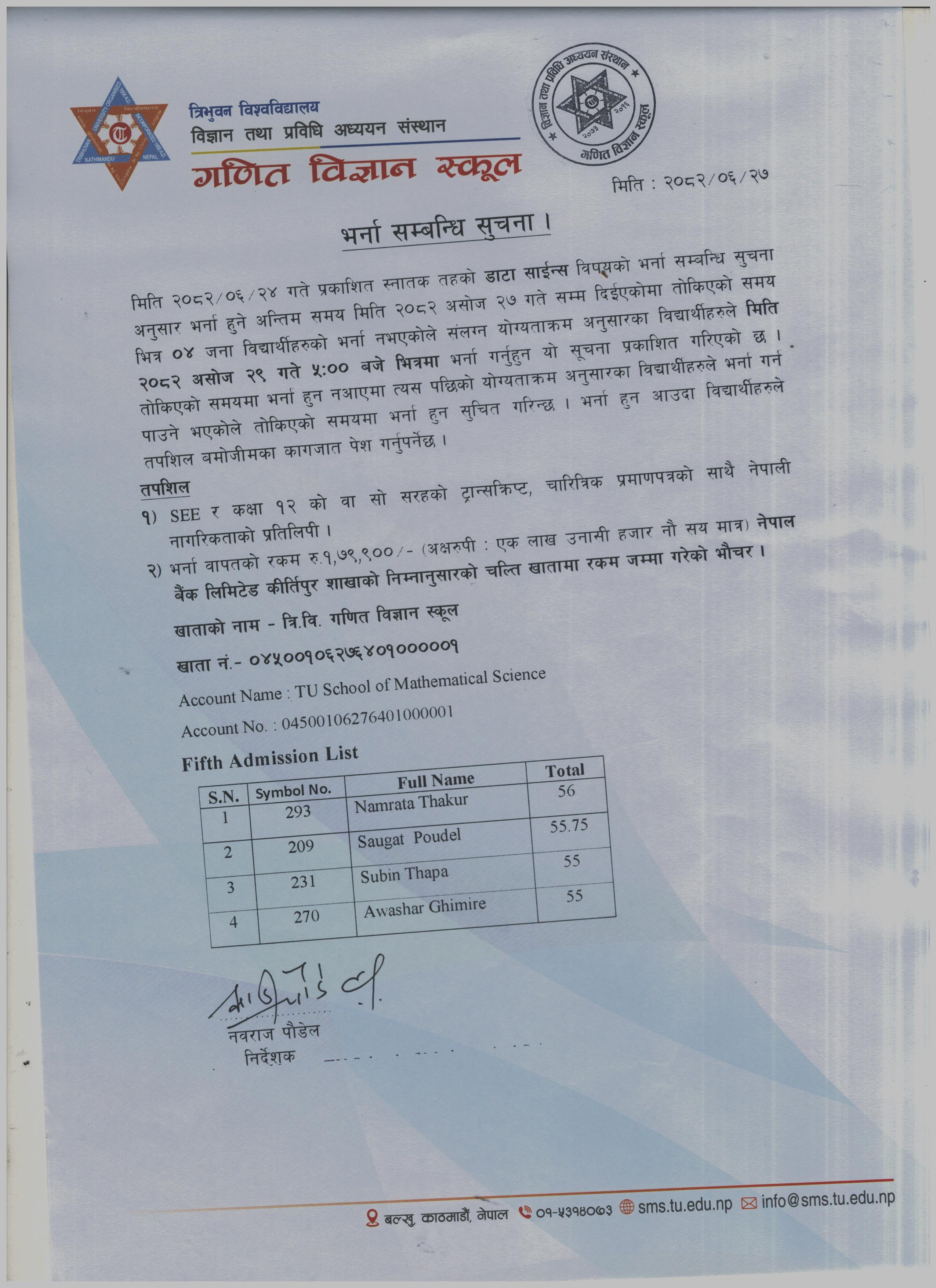 Bachelor in Data Science and Actuarial Science Fifth Admission List 2082