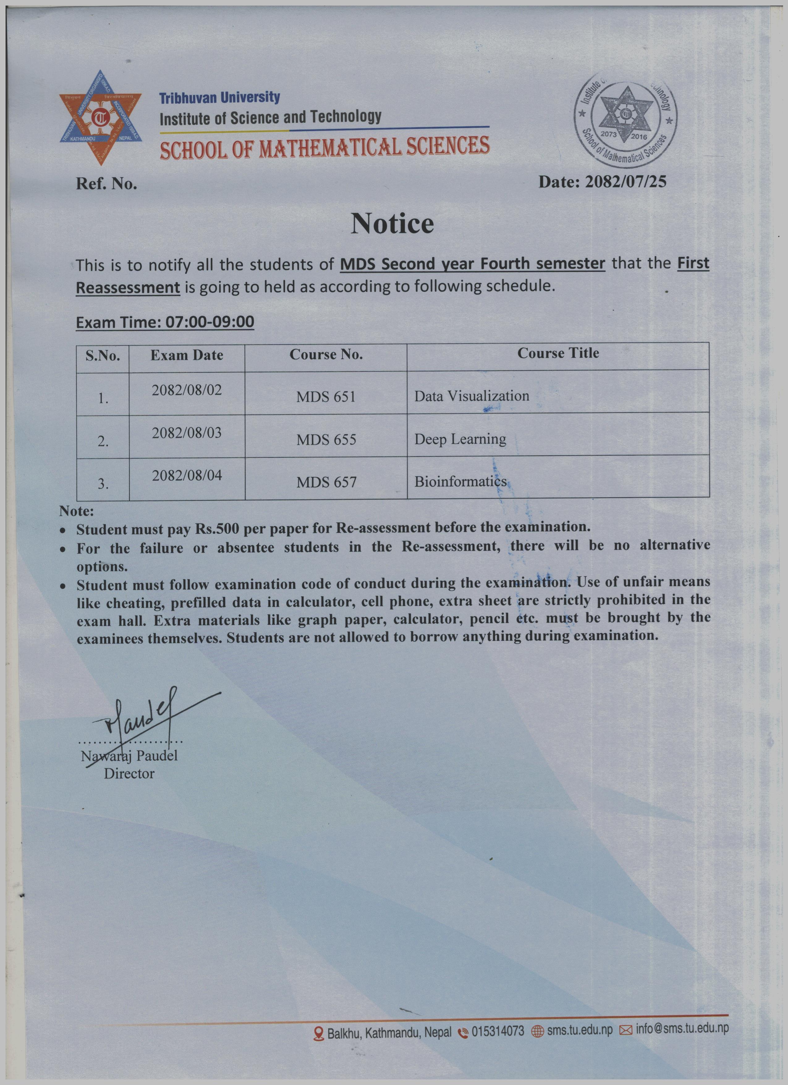MDS Fourth Semester First Reassessment Exam Schedule 2082